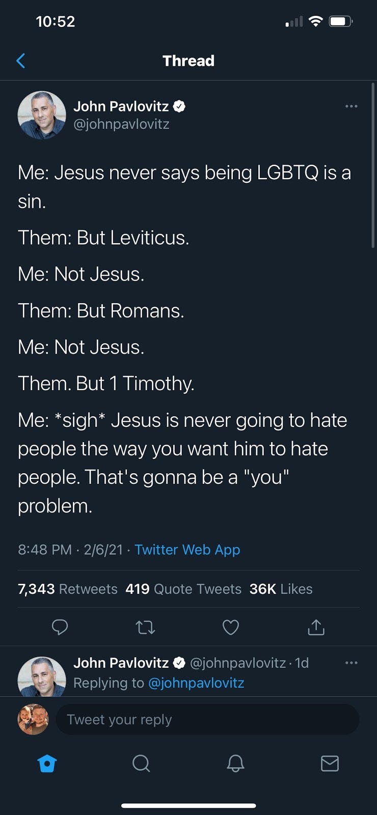 Also, notice how Pavlovitz is likely cutting off the believer before he or she can give out the chapter and verse. It’s obvious he knows what’s coming and doesn’t want to hear it.